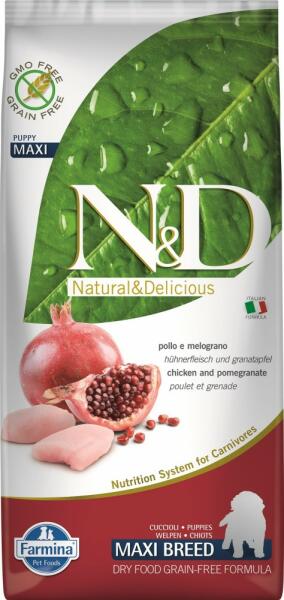 Teljes értékű gabonamentes eledel nagytestű kölyökkutyák részére. Összetétel: friss csontozott csirke (28%), szárított csirkehús (27%), burgonya, csirkezsiradék, szárított egész tojás, friss hering, szárított hering, halolaj, borsórost, szárított répa, szárított alfalfa (lucerna), inulin, frukto-oligoszacharidok, mannánoligoszacharidok, gránátalmapor (0,5%), száríto