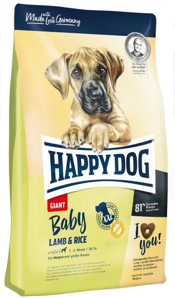 A Happy Dog Giant Baby Lamb & Rice egy teljesértékű eledel normál energiaszükségletű nagyon nagy testű kölyök kutyák számára 1 hónapos kortól 6 hónapos korig. Jellemzők: - 81% állati fehérje - Extra nagy szívkrokett, közepén lyuk - Érzékeny kutyák számára is - Ízletes báránnyal és rizzsel Az optimális zsír- és fehérjetartalom ideálisan támogatja a kölyköt