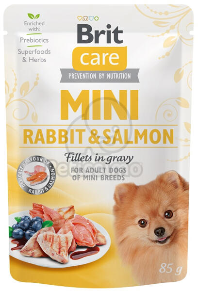Brit Care Mini Rabbit & Salmon Fillets in Gravy 24x85g – Szuperprémium állateledel kistestű kutyáknak Leírás A Brit Care Mini Rabbit & Salmon fillets in gravy prémium minőségű nyúl- és lazacdarabokból készült, amelyek zamatos szószban találhatóak, hogy még a legválogatósabb kutyusokat is elkápráztassák. Ez az ideális szuperprémium nedves eledel a kis- és apró