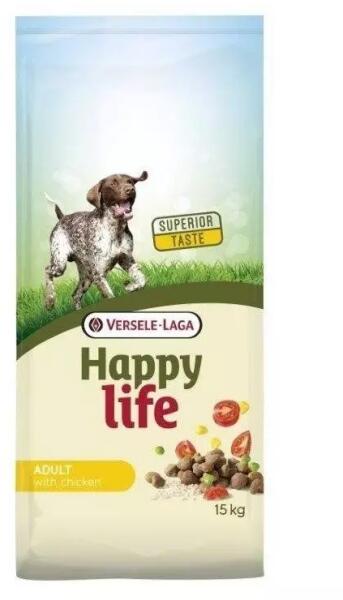 Versele-Laga Happy Life Adult csirkével 15kg - Termékleírás A Happy life Adult with Chicken egy ízletes, változatos csirkés eledel, amely az aktív felnőtt kutyákat minden szükséges tápanyaggal ellátja. Sárgarépával (β-karotin), brokkolival és paradicsommal (antioxidánsok) az immunitás erősítésére. Lazacolajjal az egészséges és fényes szőrzetért (omega-3 zsírsavak)