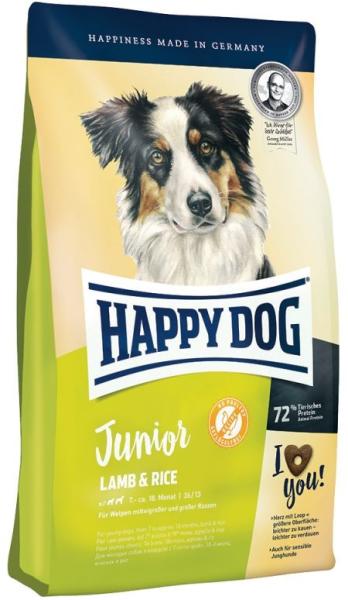 Happy Dog Junior Bárány és Rizs száraz táp már 7 hónapos kortól. 7 hónapos kortól, az eledelnek csökkentett energia- és fehérjetartalommal kell rendelkeznie, hogy elkerülhető legyen a túl gyors növekedés. A Happy Dog Junior Lamb & Rice gluténmentes eledel ideális energia-, illetve fehérjetartalommal rendelkezik fiatal kutyák számára. Az ízletes, baromfimentes receptúr