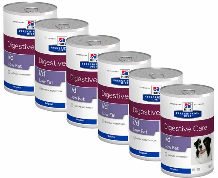 Hill'S PRESCRIPTION DIET i/d Low Fat Kutyatáp. Emésztőszervi zavarokkal küzdő kutyák diétás kezelésére, akik alacsony zsírtartalmú étrendet igényelnek. Napi etetési útmutató Testtömeg (kg)Konzerv 360 g2.52/351101 4/5203304 1/4405 1/4506 1/460 +1 1/5 / 10 testtömeg kg Napi útmutató vegyes etetéshez Napi etetési útmutató Testtömeg (kg)Konzerv 360 gSzáraztáp (g)2.51/21551/