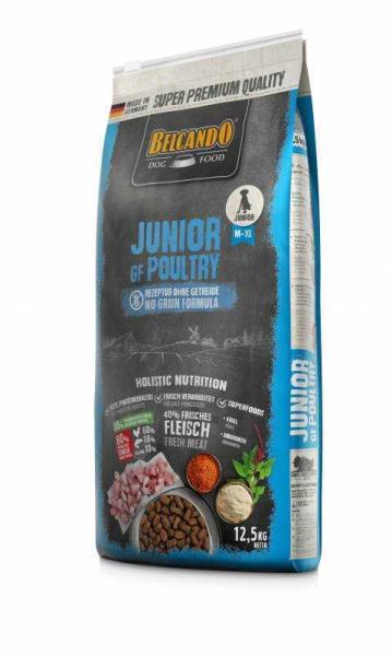 BELCANDO® JUNIOR GF Baromfival szuper prémium kutyaeledel Ajánlott közepes- és nagy testű fajták növendék kutyáinak felnevelésére, akik érzékenyek a gabonára – kb. 4 hónapos kortól. A kiegyensúlyozott növekedésről gondoskodnak a megfelelő mennyiségű energiát és ásványi anyagot tartalmazó, válogatott nyersanyagok. Akár már egy kölyökkutyánál kialakulhat glutén