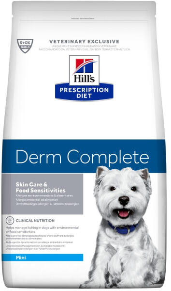 Gyógytáp, melyet kifejezetten kutyák környezeti és eleségallergiáinak kezelésére fejlesztettek ki. A Hill's PRESCRIPTION DIET Derm Complete kutyaeledel minden tápanyagot biztosít, melyre kutyájának szüksége van és hosszú távon is alkalmazható. Ez a szárazeledel finom összetevőkből készült és olyan ellenállhatatlan ízű, amit a kutyák imádnak. Így működik: Korlátoz