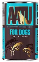 AATU Dog Tuna n Salmon konz. 400g, Friss húsból készült, tartósítószerek nélkül. gabona-, burgonya- és gluténmentes Összetevők: 90% hal összetevők (40% tonhal, 20% lazac, 15% tonhalleves, 15% lazacleves), édesburgonya, sárgarépa, lucerna, borsó, csicseriborsó, ásványi anyagok, alma, körte, narancs, paradicsom, tápióka, áfonya, áfonya, fekete áfonya, eper, petrezselyem,