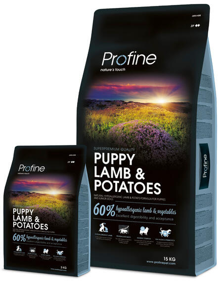 Jellemzők: Szárított bárányliszt (37%), burgonya (23%), kukorica, csirkezsír (kevert tokoferolokkal tartósítva, E-vitamin forrás), szárított alma, sörélesztő, hidrolizált csirkemáj, garnéla (1,5%), lazacolaj (1%), tengeri algák (0,5%), glükózamin-szulfát (0,025%), cikóriagyökér (mannán-oligoszacharidok forrása 0,02%), növényi keverék (édeskömény, bazsalikom, zsálya