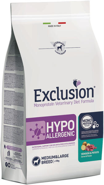 Szarvas és burgonya felhasználásával készült, monoprotein, hipoallergén összetételű diétás táp ételintoleranciában szenvedő közepes vagy nagytestű felnőtt kutyáknak. Egyetlen dehidratált állati fehérjeforrással és egyetlen szénhidrátforrással készült, hogy csökkentse az összetevők és tápanyagok intoleranciáját. GABONAMENTES FORMULA TERMÉSZETES ELŐNYÖK : Aloe
