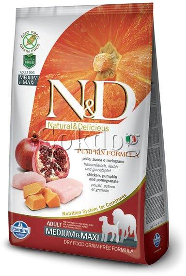 Teljes értékű gabonamentes szárazeledel sütõtökkel, csirkével és gránátalmával közepes és nagytestű felnõtt kutyáknak.