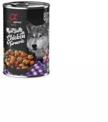 Alpha Spirit csirkehúsgombóc kurkumával 400g - Termékleírás Az ALPHA SPIRIT Húsgombócok csirkével és kurkumával 400 g nedves kutyaeledel egy vonzóan ízletes étel, amely minden szükséges tápanyaggal ellátja a felnőtt háziállatokat. A konzervdoboz tartalmának 80%-a golyóvá formázott, aromás csirkehús. Az ételt olyan jótékony anyagokkal egészítik ki, mint a burgonyakem