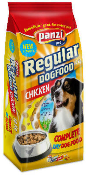 Panzi Regular Dog Adult csirke A Panzi Dog Adult kutyaeledel az átlagos aktivitású házőrző és hobbikutyák rendszeres táplálására kifejlesztett, extrudált kutyaeledel. Élettanilag optimálisan beállított arányban tartalmazza az összes olyan tápanyagot, ásványi elemet és vitamint, amely a kutyák harmonikus fejlődéséhez szükséges. Ha a Panzi Dog Adult kutyaeledelt választ