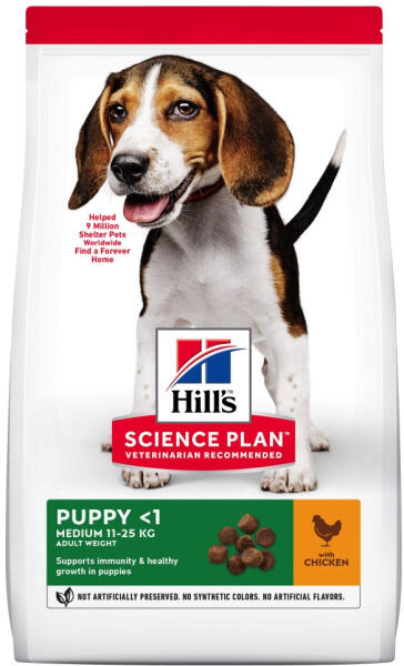 AHILL'S SCIENCE PLANMedium Puppy kölyökkutyáknak készült, csirkés eledelt speciálisan a kiskutyák fejlődési igényeihez igazodva alakítottuk ki a lehető legjobb életkezdetért és a bennük rejlő potenciál teljes kihasználása érdekében. Legfontosabb előnyei: Halolajból származó DHA az agy és a szem egészséges fejlődéséért. Kiváló minőségű fehérjék a szálkás i