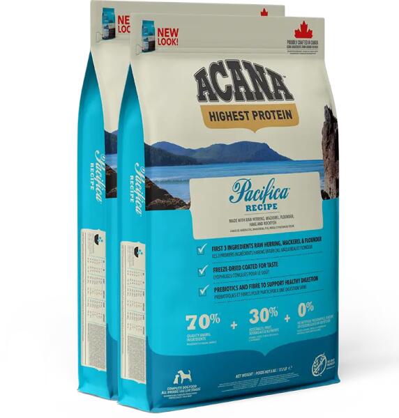 Acana Pacifica Dog száraztáp - 2kg Az Acana Pacifica Dog száraztáp gabonamentes kanadai prémium-eledel bármely fajtájú felnőtt kutyának regionális összetevőkből, 70% frissen fogott hallal és 30% zöldséggel, gyümölccsel és növényi kivonattal, természetes fehérjékkel. A prémium-eledel receptúrája a Csendes-óceán északi, kanadai részén, a hosszú távon való fenntart
