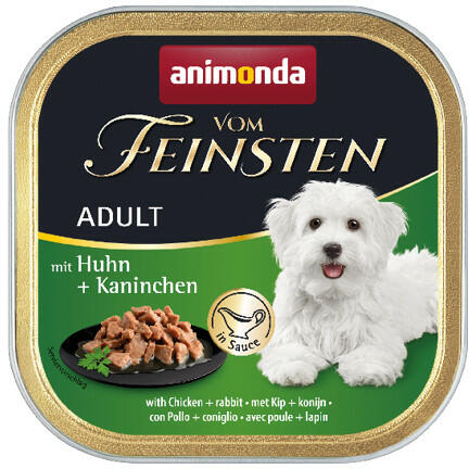 A Vom Feinsten Adult a kiegyensúlyozott, ízletes, egészséges táplálkozást jelenti a legmagasabb szinten 1 és 6 éves kor közötti felnőtt kutyák számára. A zsenge darabok húsalapanyagainak minősége, finom ínyenc szósszal kombinálva egyedülálló élvezetet garantál. A finom ínyenc ragu a felnőtt kutyát minden alapvető tápanyaggal ellátja. Összetétel : 41% hús és áll