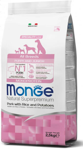 Egyetlen állati fehérjeforrásból készült, szuperprémium, monoprotein száraztáp minden méretű kölyökkutya számára, barna rizzsel és burgonyával. Az elsődleges összetevő a sertés , és a friss hús hozzáadásának köszönhetően kiváló emészthetőség és ízletesség jellemzi. Kifejezetten a kutya jólétét szem előtt tartva fejlesztették ki a receptet, a legújabb gene