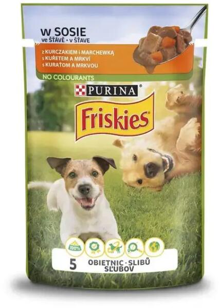 A Friskies delicious pocket egy teljes értékű nedves eledel csirkével és sárgarépával felnőtt kutyák számára. elősegíti a vitalitást és csillogóvá teszi a szemet hozzajarul a fényes szőrzethez és a sima bőrt jó emésztést biztosít a minőségi összetevőknek köszönhetően kutyája egészségének támogatása 100%-ban teljes értékű és kiegyensúlyozott étrend Meste