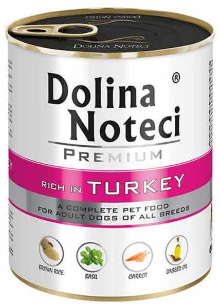 A Dolina Noteci Premium teljes értékű eledel pulykahússal, minden fajta felnőtt kutya számára. A pulykahús magas tápértékű, viszonylag alacsony kalóriatartalmú, ugyanakkor tápláló, kiváló lizin-, triptofán-, metionin- és cisztinforrás. A pulykahús zsírja is azon kevés húsnyersanyagok egyike, amely az n-6 családba tartozó többszörösen telítetlen zsírsavak értékes