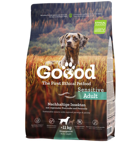 Fenntartható rovarfehérje, regionális paszternákkal és petrezselyemmel. A fajnak megfelelően tenyésztett rovarjaink kiváló minőségű és fenntartható fehérjeforrást jelentenek. A rovarfehérjén alapuló, hipoallergén kutyatáp nemcsak könnyen emészthető és értékes tápanyagokat biztosít, hanem táplálkozási szempontból érzékeny kutyák számára is kiválóan alkalmas.