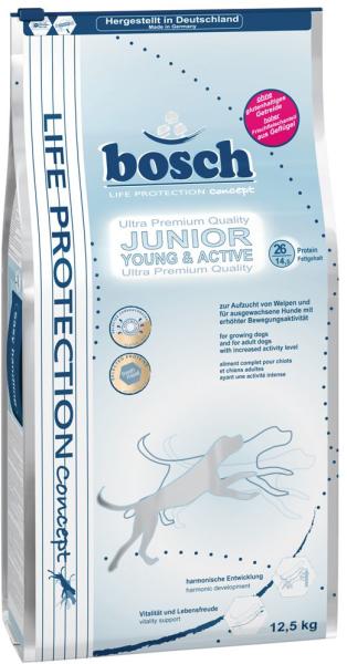 Gyártó: bosch Modell: Junior Young & Active 12,5 kg Leírás: A Bosch Young & Active száraz, kiegyensúlyozott kutyatáp Life Protection formulával, magas emészthetőséggel és kiegyensúlyozott fehérje-, zsír- és ásványi anyag összetétellel biztosítja a fiatal kutyák és kölyökkutyák minden fajtájú és fokozott aktivitású kutyák számára az optimális étrendet és