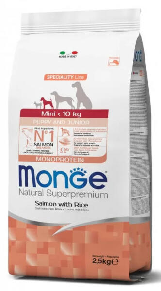 Egyetlen állati fehérjeforrásból készült, szuperprémium, monoprotein száraztáp kistestű kölyökkutya számára. Friss lazaccal és barna rizzsel , melyek támogatják a bélrendszer egészségét. Tartalmaz napraforgómagot, és Omega-6-ban és E-vitaminban természetesen gazdag szuperétel-összetevőket, amik rendkívül fontosak az egészséges fejlődéshez az élet első hónapjaib