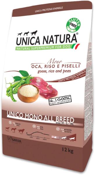 Közepes, nagy ill. óriás testű átlagos vagy intenzív fizikai aktivitású felnőtt kutyáknak✓ Minden életszakaszban alkalmazható✓ Kizárólag egyféle állati eredetű fehérjét, libahúst tartalmaz, így alkalmas táplálékérzékeny állatok számára✓ Alacsony glikémiás indexű borsóval dúsítva✓ Állandó, jól bevált, csirkementes receptúra az ízek közötti zökken