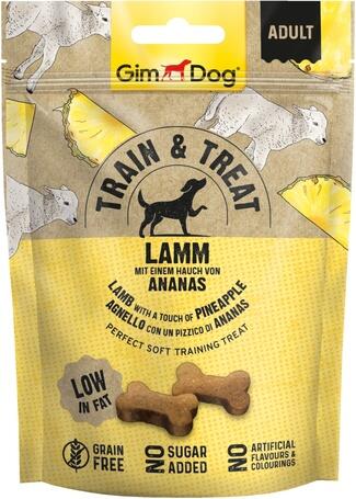 125g A GimDog Train & Treat Lamm & Ananas snack egy minőségi jutalomfalat báránnyal és ananásszal kutyák részére.