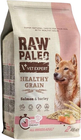 2kg A Raw Paleo Healthy Grain Adult Salmon egy teljes értékű és kiegyensúlyozott szárazeledel felnőtt kutyák számára kiváló minőségű szárított lazachúsból, könnyen emészthető halliszttel dúsítva. A két különböző fehérjeforrás használata az esszenciális aminosavak jobb egyensúlyát eredményezi a kutya számára. A termék jellegzetessége továbbá a kétféle sz