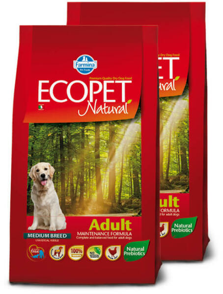 Adult Chicken Ecopet Natural Adult Chicken egy teljes értékű, kiegyensúlyozott száraz kutyatáp, felnőtt kutyák részére. Az Ecopet Natural cikória gyökérrel és élesztőgombák sejtkivonatával készült, melyek jó hatással vannak a bélműködésre. Egy hónappal az Ecopet Natural etetésének elkezdésétől számítva a hasznos baktériumok, bifidobaktériumok akár százszorosuk