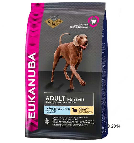 A Eukanuba Adult Large Breed Bárány és Rizs teljes értékű, kiegyensúlyozott száraztáp felnőtt (1-6 év), nagy- és óriás testű (25 kg felett) kutyáknak az egészséges ízületek fejlődéséért. Az érzékeny gyomor és a bőr egészségéért, bárány ízesítéssel . A Eukanuba Adult Large Breed Bárány és Rizs kizárólag kiváló minőségű, gondosan válogatottalapanyagoka