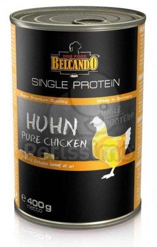 BELCANDO SINGLE PROTEIN szín tyúkhús konzerv Szuper prémium minőségű táplálék kiegészítő kutyáknak A BELCANDO MIX IT szárazeledellel együtt etetve egy igazán kiegyensúlyozott táplálást biztosít kutyájának. Összetétel:tyúkhús, -szív, -máj, -zúza, -nyak (73%); tyúkhúslé (27%) Összetétel elemzés:fehérje 11,5 %; zsír 4,0 %; nyershamu 2,2 %; nyersrost 0,3 %; nedve