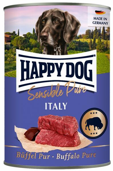 Minimum rendelhető mennyiség: 6 db Happy Dog Büffel Pur - Bivalyhúsos Happy Dog Italy konzerv Egyféle fehérje-100%Bivaly Eleség intolerancia és érzékeny emésztés esetén is kiváló '-100% Bivaly, kizárólag friss vágású bivalyhúsból készül, -szója, növényi adalékok, színezék és tartósítószerek hozzáadása nélkül - egyetlen proteinforrást tartalmaz ezért tökéle
