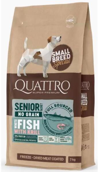 FAGYASZTVA SZÁRÍTOTT HÚSBEVONATTAL. A Quattro termékválaszték innovatív "fagyasztva szárított húsbevonat" technológiával készül. Ez az exkluzív megoldás lehetővé teszi, hogy a szemcséket fagyasztva szárított hússal vonják be, gazdagítva a Quattro szemcséket természetesen megőrzött tápanyagokkal és biztosítva, hogy kedvence imádni fogja a terméket. A Quattro Small B