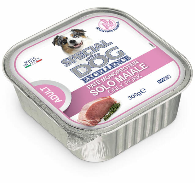 Minimum rendelhető mennyiség: 6 db Special Dog Excellence Monoprotein Pork Sertéshúsos pástétom felnőtt kutyáknak. Special Dog Excellence Monoprotein Pork Sertéshúsos pástétom felnőtt kutyáknak. -100% Sertés , kizárólag friss vágású sertésből készül -szója, növényi adalékok, színezék és tartósítószerek hozzáadása nélkül -egyetlen proteinforrást tartalmaz ezé