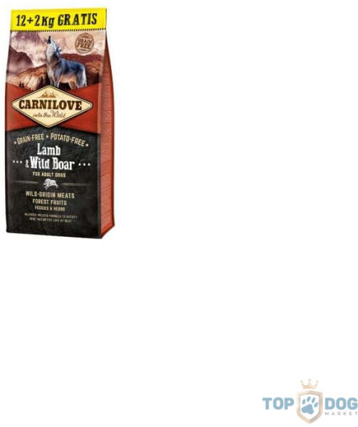 CarniLove Adult Lamb & Wild Boar 12kg +2 kg GRÁTISZ Prémium gabona- és burgonyamentes, hipoallergén kutyatáp bárányhússal és vaddisznóhússal minden testméretű felnőtt kutya számára. -Magas hústartalom -Gabonamentes -Burgonyamentes -Zöldségek , gyümölcsök -Sörélesztő, yukka kivonat -Antioxidánsok -Lazacolaj az egészséges csillogó bundáért Összetétel: Hús- és