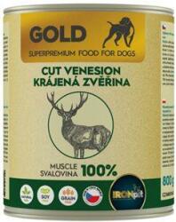 IRONpet Gold Dog Szarvashús vágott izom konzerv 800g, Válogatott 100% szarvas izomhús minden fajta kutyának. Az őz az egyik legkönnyebben emészthető hús, és nagyon diétás. Minimális zsírt tartalmaz, ugyanakkor nagyon tápláló. Fontos B-vitaminokat, ásványi anyagokat, például vasat és foszfort tartalmaz. Fehérjében, nátriumban és káliumban gazdag. 100%-ban természetes ö