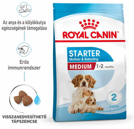 30kgA Royal Canin Medium Starter Mother & Babydog egy teljesértékű eledel, közepes testű szukáknak a vemhesség és a szoptatás során, valamint elválasztás alatt lévő kölyökkutyáknak 2 hónapos korig. Összetétele bizonyított komplexet tartalmaz, beleértve a C- és E-vitamint, amely támogatja az egészséges immunrendszer fejlődését. A jótékony hatású prebiotikumok (p