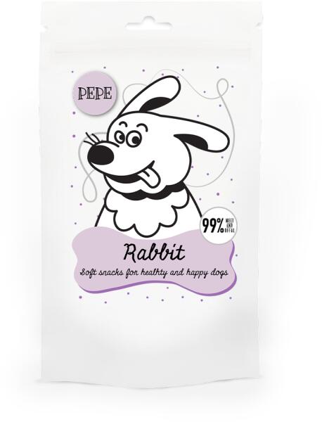 Paka Zwierzaka Pepe Mini Chunkies nyúl 80g - Termékleírás Frissen elkészített nyúlhúsból és nyúl belsőségekből készült, 8 mm x 8 mm-es, apró, puha darabok. A hús európai termelésből származik (tisztelettel, egészségügyileg és állatjóléti szempontok figyelembevételével nevelt). Természetes finomság, amely kiváló kiegészítője az étkezéseknek minden méretű ku