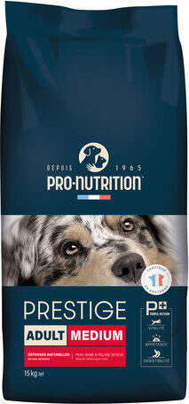 30kg A Pro-Nutrition Prestige Adult Medium (régebben Flatazor Prestige Adult) egy teljesértékű száraztáp normál testméretű felnőtt kutyák számára. Egyrészt fedezi a napi energiaszükségletet, másrészt megfelelő mennyiségű fehérjét és zsírt tartalmaz, ezzel elősegítve az optimális testsúly megtartását. Antioxidánsokban gazdag, mely támogatja az immunrendszer müköd