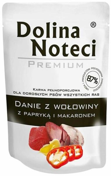 A Dolina Noteci Premium teljes értékű nedves eledel marhahússal, paprikával és tésztával, minden fajta felnőtt kutyának. A marhahús kiváló forrása a szelénnek, vasnak és réznek - olyan ásványi anyagoknak, amelyek fontos szerepet játszanak a szervezet védelmi funkcióiban. a tészta B1-, B6- és PP-vitamint tartalmaz, amelyek segítik az emésztést a paprika magas ásványi an