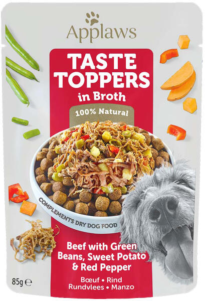 Gyártó: Applaws Modell: Taste Toppers in Broth Beef, Green beans & Pepper 12x85 g Leírás: A zooplus. hu kínálatából: Ha valami kis pluszt szeretne kutyája napi étrendjébe csempészni, ideális választása az Applaws Taste Toppers hús- vagy hallében nedvestáp. Ez a táplálékkiegészítő eledel 100%-ban természetes összetevőkből készül és kitűnő ízről gondoskodik. A