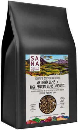 SANA Komplett Menü szárazeledel - Báránnyal és levegőn szárított báránnyal 3 kg - 9000 Összetevőkről részletesen: E termék is gabona és gluténmentes. A benne található fehérje kizárólag állati eredetű, a megfelelő szénhidrátbevitelt pedig nem gabona, hanem más gyümölcsök biztosítják, ezzel jobban illeszkedik a kutyák természetes, háziasításuk előtti időkre j