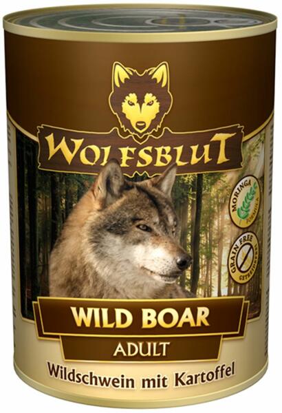 Wolfsblut természetes eledel gabonamentes receptből felnőtt kutyák számára. vaddisznóhús a fő összetevő, élelmiszer minőségű, nem tartalmaz hormonokat és gyógyszereket az édesburgonya több béta-karotint tartalmaz, mely egy fontos antioxidáns, és habár édesebb, a magasabb amilóztartalom lassabb vércukorszint emelkedést okoz a hagyományos burgonyához képest. az eledel t