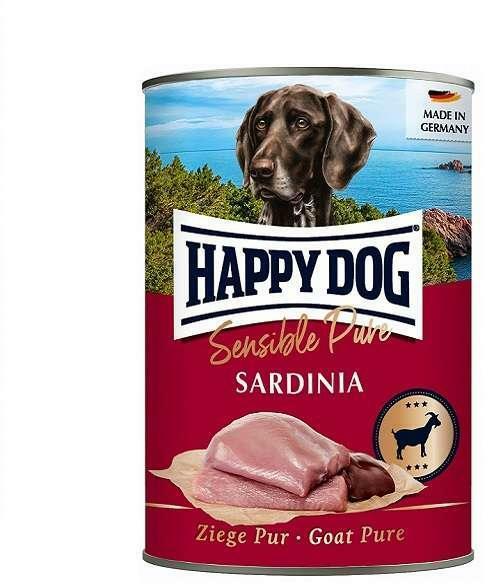 A Happy Dog Sensible Pure Sardinia - Kecskehúsos konzerv kizárólag frissen vágott kecskéből származó hús felhasználásával készül. A kecskehúsos kutyatáp egy teljes értékű nedves eledel válogatott fehérjét tartalmaz, mely ideális táplálékintolerancia és allergia esetén egyaránt. Jellemzők:- Válogatott fehérje: 100% kecske- Gabona-, szója- és cukormentes- Hozáadott