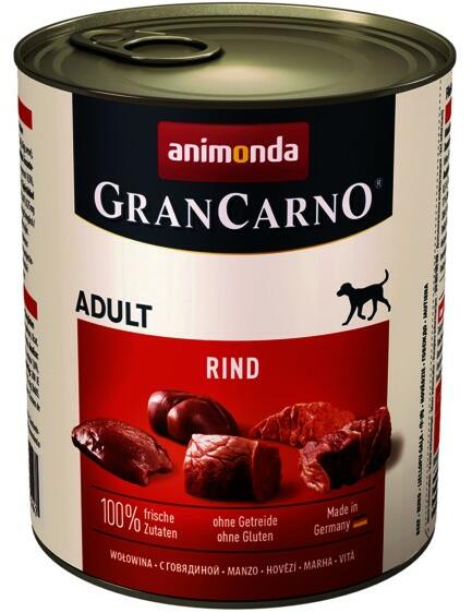 Természetes, fajnak megfelelő táplálkozás kutyák számára – ezt jelenti a GranCarno® kutyaeledel márka. A friss, húsos összetevők valódi ízt biztosítanak, amelyet a kutyák értékelnek. A GranCarno finom nedves eledele létfontosságú tápanyagokkal látja el a kutyát. A marhahús egészséges és páratlan csemege a kutyák számára! A GranCarno Adult Rind 100%-ban friss, hú