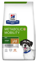Diétás száraztáp felnőtt kutyák számára, igényekhez igazított energiatartalommal, megkönnyíti a súlykontrollt, omega-3 zsírsavakkal halolajból, az ízületi funkciók elősegítése érdekében, kis krokettekkel. Tökéletes a túlzott testtömegre hajlamos kutyáknak: kalóriacsökkentett receptúrájának köszönhetően a Hill's Prescription Diet Metabolic + Mobility Mini kutyat
