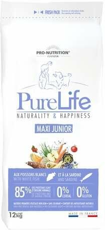 24kg A Flatazor Pure Life Maxi Junior egy teljesértékű szuperprémium eledel nagy testméretű növendék kutyák egészséges fejlődéséhez. Hipoallergén recept alapján készül, 85%-os állati fehérjetartalommal, közte fehérhallal és szardíniával, így érzékeny szőrzetű és/vagy emésztésű kutyáknak is kiváló választást jelent. Garantálja a harmonikus növekedést és me