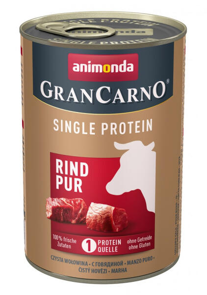 Az Animonda kutyatáp csak egyetlen állati fehérjeforrást tartalmaz és minden létfontosságú tápanyaggal ellátja kutyáját. Továbbá előállítása során teljes mértékben mellőzték a szója, a cukor, a mesterséges aromák, színezőanyagok és tartósítószerek hozzáadását. Az Animonda GranCarno Adult Single Protein eledeleket Németországban készítik szigorú minőségi ir