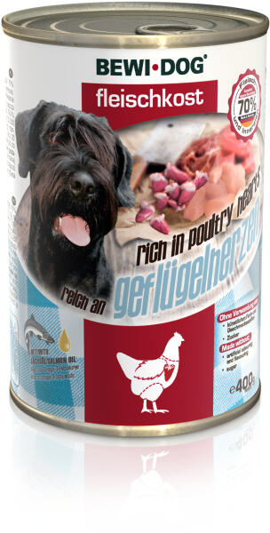 Szaftos baromfiszívben gazdag Gabona mentes receptúra Gazdag vitamin és nyomelem tartalom Gazdaságos kartonos kiszerelés Bewi-Dog Színhús baromfiszívben gazdag A Bewi-Dog Színhús baromfiszívben gazdag konzerv egy igazi ínyencség a nedves kutya eledelek között. A felhasznált hús az előkészítésnek köszönhetően könnyen emészthető és nagyon finom. Az értékes vitaminok nem