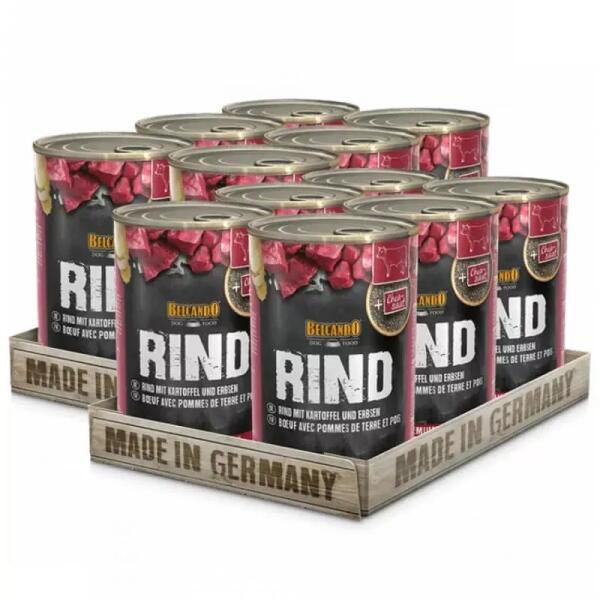 Belcando konzerv marhahús burgonyával és borsóval Kiváló minőségű konzerves nedves eledel kutyája számára. Öt különféle húsféleséggel kapható, melyek természetesen ellenőrzött német gazdaságokból származnak. Nem használunk húspépet, hanem csak gondosan megfőzött darabos minőségi hús kerül a konzervekbe. Minden variációt válogatott hozzávalókkal tettünk mé