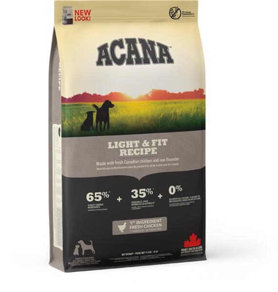 JAVASOLT ÉLETKOR: Felnőtt JAVASOLT MÉRET: Kistestű, Közepes testű, NagytestűA diétázó kutyának sok fehérjére van szüksége az izomzat megőrzéséhez, ellenben kevés szénhidrátra, ami a fő felelőse a zsírraktárak gyarapodásának. Ezért az ACANA Light & Fit tele van friss csirkével, egész tojással, továbbá Csendes-óceánból fogott, nyers lepényhallal. A WholePrey