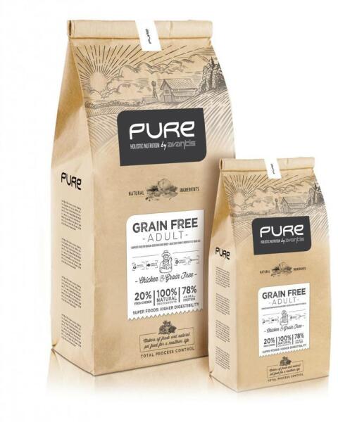 A Pure Grain Free Adult gabonamentes, teljes értékű eledel felnőtt kutyák számára, amely gabonafélék nélkül készült, így ideális választás a gabonafélékre intoleráns vagy allergiás kutyák számára. Alkalmas minden fajta 12 hónapos vagy annál idősebb felnőtt kutyák számára. Optimális mennyiségű rostot tartalmaz a bélmozgás megkönnyítése érdekében, valamint pr